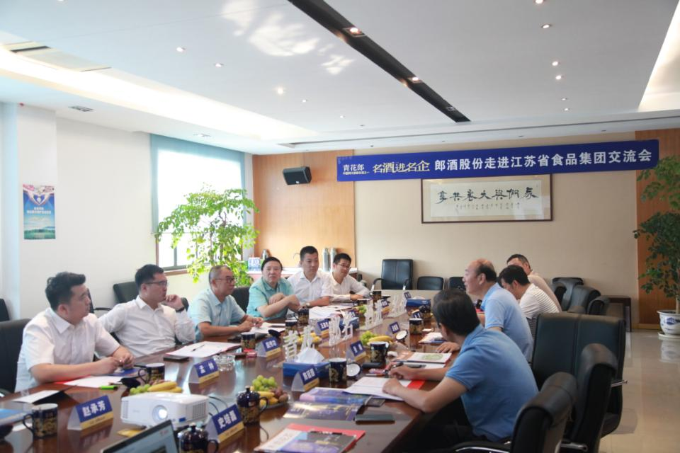 8月20日,郎酒股份監(jiān)事會(huì)主席王宗杰、青花郎事業(yè)部華東大區(qū)總經(jīng)理殷秀功等一行6人蒞臨蘇食集團(tuán)考察交流并開展“名酒進(jìn)名企”活動(dòng)。
